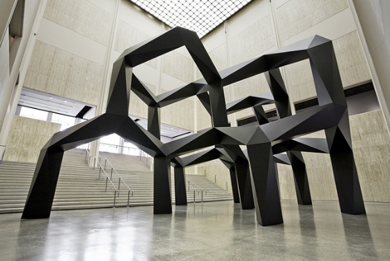 How dare this artwork physically exist in our space? Up to the moment of encountering sculpture, the museum visitor can walk around freely, looking at paintings from any distance and angle they would like. With a sculpture located in the gallery space, they must work around it to view other works. Sculpture is an obstruction and an unavoidable mass of ‘fat’ that makes viewers aware of the vast empty spaces surrounding the artwork. In fact, without the existence of the sculpture, the room’s space cannot be recognized. Without sculpture, space is not space. It is nothing, yet something at the same time. Emptiness can only be recognized with the presence of fullness. Therefore, when a sculptor creates physical masses of fat, it also creates the existence of empty spaces. Take for instance, Tony Smith’s Smoke. Walking through, you have no choice BUT to notice the hollow spaces, because each and every leg of the sculpture is an obstruction in the viewer’s space.